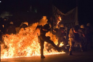 Por outro lado, o Syriza constitui um agente de desmobilização, colocando um fim à crise de legitimação que havia concedido protagonismo à criatividade social e auto-determinação dos movimentos, e contribuindo para a institucionalização das lutas, marginalização das reivindicações incompatíveis com o seu projeto de gestão estatal e restituição da lógica de representação e delegação política, promotoras da inação e da complacência.
