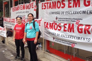 A greve nacional dos bancários entra em sua segunda semana sem nova manifestação dos bancos e do governo, que inicialmente apresentaram proposta de 5,5% de reajuste, o que para os trabalhadores é inaceitável, já que mal cobre metade da inflação do ano, e portanto na prática é uma redução salarial. Os bancários em São Paulo vêm demonstrando que estão dispostos a lutar para barrar o ajuste e o arrocho que os patrões e o governo querem empurrar para o conjunto da classe trabalhadora nesse contexto de crise econômica. Além da adesão massiva à greve nos bancos públicos, setores organizados da base vêm demonstrando que é possível construir uma outra greve, para além dos piquetes de fachada e do jogo de luzes e fumaça (ver aqui) que o sindicato dos bancários de São Paulo, controlado pela Articulação sindical do Partido dos Trabalhadores, protagoniza não ao lado dos bancários organizando-os para a luta, mas em seu nome, terceirizando a luta dos trabalhadores com seus militantes profissionais e alijando-os da possibilidade de construir o movimento de forma classista e independente.