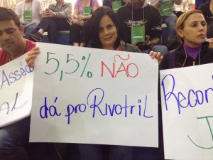 Em uma clara demonstração de descontentamento com a omissão dos bancos e disposição de luta, os bancários das mais diversas regiões da cidade lotaram a última assembleia no dia 13\10, mesmo sem propostas novas, unicamente para organizar e fortalecer a greve da categoria. Além da inesperada assembleia lotada, um setor da categoria, os Atendentes da Central de atendimento e do SAC do Banco do Brasil, compareceram em massa na assembleia, publicizando suas demandas específicas, demonstrando a capacidade de auto-organização e convocando o conjunto da categoria para participar de um ato que ocorrerá amanhã as 9h no complexo da rua Verbo Divina, zona sul de São Paulo. Este será o primeiro ato de rua realizado pela categoria sem ser comandado pela direção do sindicato em muitos anos. As reinvindicações são por melhores salários, contra a constante deterioração das condições de trabalho e a falta de critérios para a ascensão profissional (com caso recente de suspeitas de nepotismo).