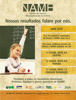 Com isso em mente podemos qualificar melhor esse processo, pois sabemos que a municipalização do ensino fundamental abriu espaço para um processo de privatização do ensino. Em 2011, por exemplo, 44% dos municípios do estado de São Paulo (282 dos 644) já utilizavam sistemas apostilados de ensino. Dentre eles, 115 abandonaram totalmente os livros distribuídos pelo PNLD (Programa Nacional do Livro Didático) [13], que, diga-se de passagem, é outra forma de garantir lucros exorbitantes para as editoras. Trata-se de um programa instituído no governo FHC e imposto pelo Banco Mundial como chantagem para liberação de empréstimos. A adoção dos sistemas apostilados de ensino também é um argumento central quando o tema é melhoria dos indicadores da educação. O sistema Name (Núcleo de Apoio à Municipalização do Ensino), da Pearson Brasil, é considerado o grande responsável para que uma escola do município de Cajuru alcançasse o primeiro lugar no ranking do Ideb em 2009 [14]. Assim, diversos grupos como Santillana, Anglo e Abril passaram a disputar a preferência das secretarias municipais de ensino.
