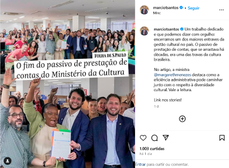O MinC tem procurado responder a opinião pública mais com comunicações positivas do que com atos efetivos. Desde então, o Secretário de Fomento Helenilton Menezes, o Secretário Executivo Márcio Tavares e a Ministra da Cultura Margareth Menezes têm dado versões de como este passivo já está praticamente sanado. Chegaram a visitar o setor responsável em fazer prestações de contas no MinC para demonstrar que ali existe uma equipe.