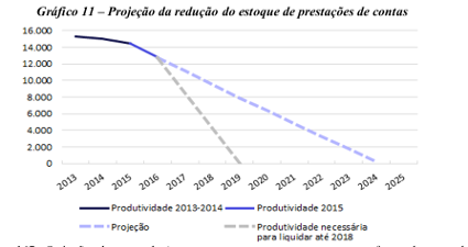 Na média de prestações de contas, o passivo vem crescendo com pequenas variáveis no que tange às formas de combate e o comparativo das medidas tomadas entre 2014 e 2016, quando foram contratados mais de 100 funcionários terceirizados para organizar as prestações de contas, medida que segundo TCU falharam, resultando em avanço de passivo, conforme (OCB 2025, p.159).