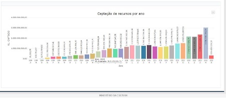 Os dados quantitativos (sem possibilidade de análise das variáveis) sobre o avanço da captação da lei Rouanet são, de acordo com a plataforma Salic: