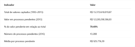 Em 2015, cada processo pendente valia em média R$ 926.000;