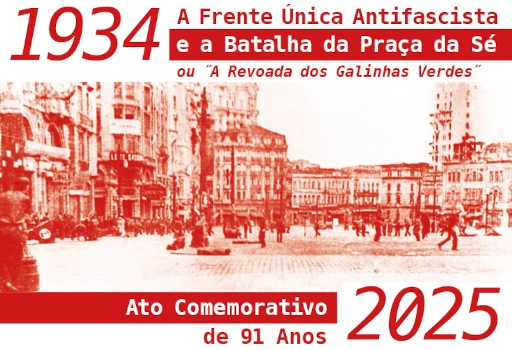 O Centro de Estudos do Movimento Operário Mário Pedrosa promove um ato, em 7 de outubro próximo, para rememorar os 91 anos da expulsão dos fascistas da Praça da Sé. O evento acontece no auditório da Unesp, na própria praça.