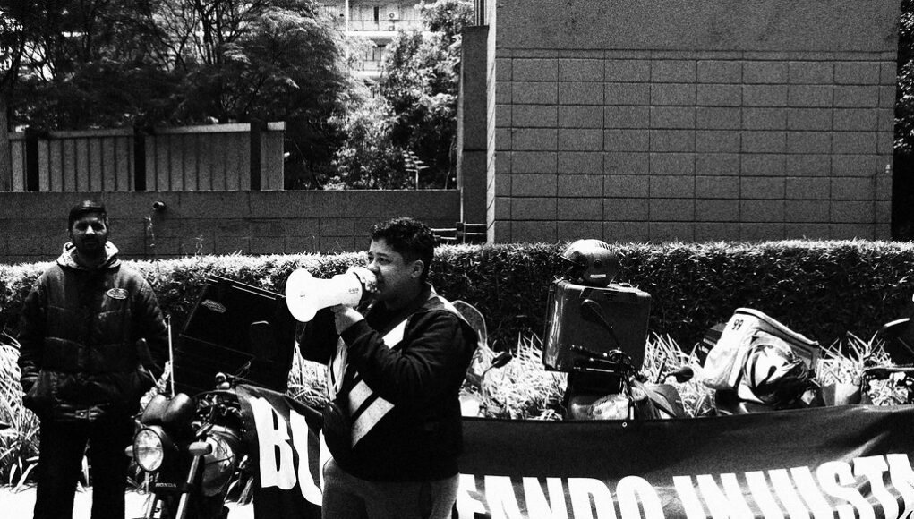 Início Destaques Ocupação da sede da 99 Destaques Ocupação da sede da 99 Fotografias do ato dos entregadores na Praça Charles Müller e da ocupação da entrada da sede da 99 no último dia 25 de novembro. 08/12/2025 0 Por Vanessa Monteiro 1 de 43